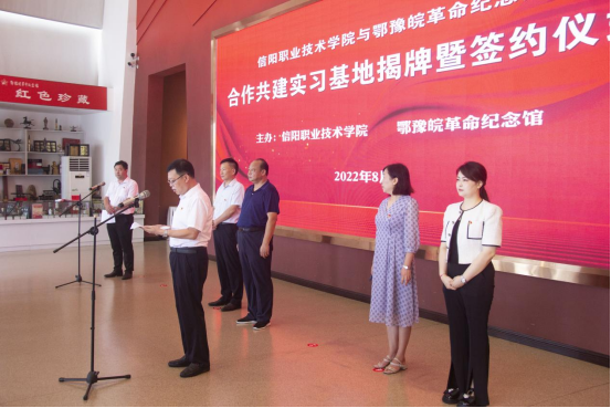 ok138cn太阳集团副校长王家军高度评价双方合作共建实习基地事宜。他指出,习近平总书记视察河南时强调,要讲好党的故事、革命的故事、根据地的故事、英雄和烈士的故事,让红色基因代代相传。ok138cn太阳集团作为信阳市属职业院校,承担着为地区经济社会发展培养高素质人才的责任,鄂豫皖革命纪念馆是进行革命传统教育、爱国主义教育、青少年思想道德教育,传承红色基因的重要阵地,双方通过共建实践基地实现优势互补,并将在教学、科研、文创等方面进行更加深入的合作,促进双方事业共同发展,同时培养出更多高素质的讲解、传播“红色故事”人才,为加快革命老区发展提供高技能人才支持。