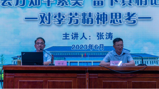 在与现场学生共同观看了纪念李芳老师的视频后,张涛开始了他的深情讲述。李芳老师那些生前不为人知的点点滴滴,经过张涛的回忆,深深地感动着现场的每一个人。他指出,形成李芳精神靠多年的积淀,是红色土地的浸润、家风教化的影响和自身修为的坚守;李芳精神体现在信念上的初心如一、平凡中的平和向上、自然里的泥土芬芳和生死间的勇于奉献。