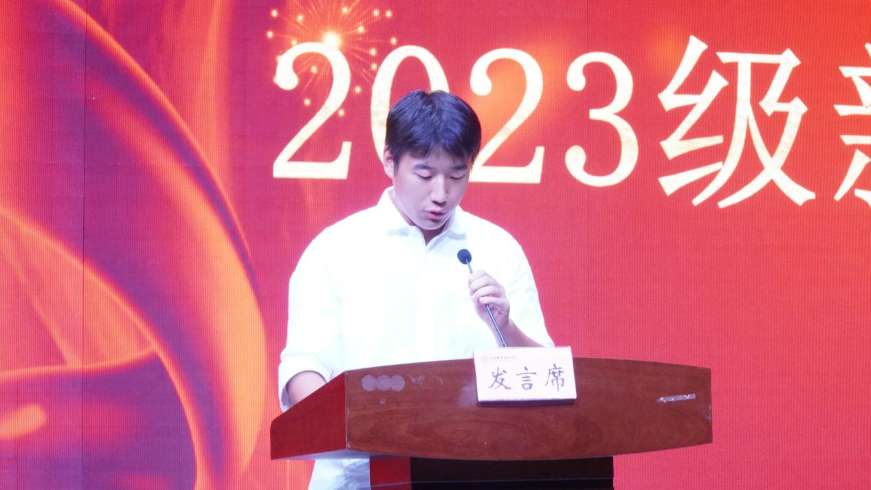 在校生代表蔡金辰同学鼓励新生们明确学习目标,积极参加学生社团,全面提高自身素质。