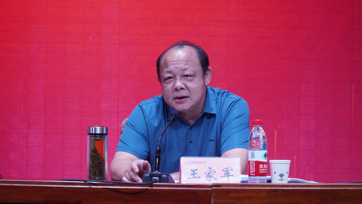 王家军致辞,他勉励2023级新同学们:要静以修身,俭以养德,珍惜三年的学习时光,沉下心来多读书、读好书;要苦练本领、增长才干,为将来走好每一步打下坚实的基础;要谋划未来,明确方向,打牢适应和驾驭未来的本领能力;要学以致用,以学促行,积极主动参加社团活动和社会实践,在与他人的合作中充分展示自我。