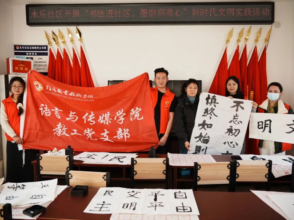为丰富社区居民业余生活,弘扬中国传统书法艺术,11月27日下午,OK138太阳集团在甘海迪、魏翔、傅饶三位老师的带领下,携手兰亭书法协会郭雨滢、陈鑫雨、陈秋靓三位同学,一同前往永乐社区,开展了“支部联支部”文明实践活动。