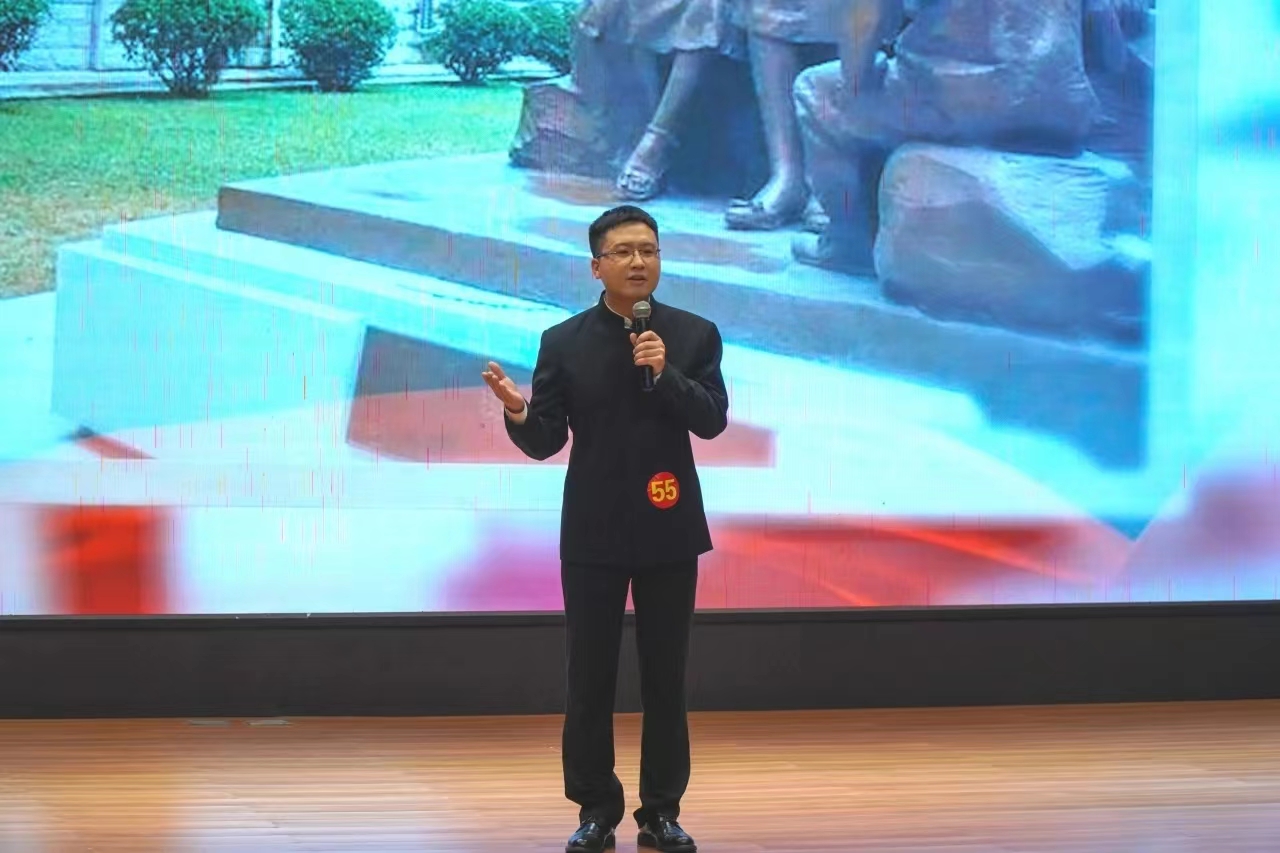 刘鹏、魏翔以真挚的情感、生动的语言、铿锵的语调,紧扣“强国复兴有我”主题,结合生活、工作实际,展示了青年教师敬业奉献、昂扬向上的良好精神面貌,传达着对教育事业的热爱和忠诚。《大爱铸师德,芳华映山红》以我校英雄校友李芳老师为原型,刘鹏娓娓道来,深情地讲述了李芳老师扎根乡村,为国育才,最后牺牲自我勇救学生的故事。《继承“红田”遗志 ,筑梦强国复兴》讲诉了大别山革命斗争的残酷,魏翔慷慨激昂、震撼人心的演讲,让革命先烈视死如归、前赴后继的大无畏形象直击人心。他号召青年人继承先辈们的遗志,站在新的历史起点上,守信念、履职责,甘奉献、创业绩,为中华民族伟大复兴的中国梦贡献力量!