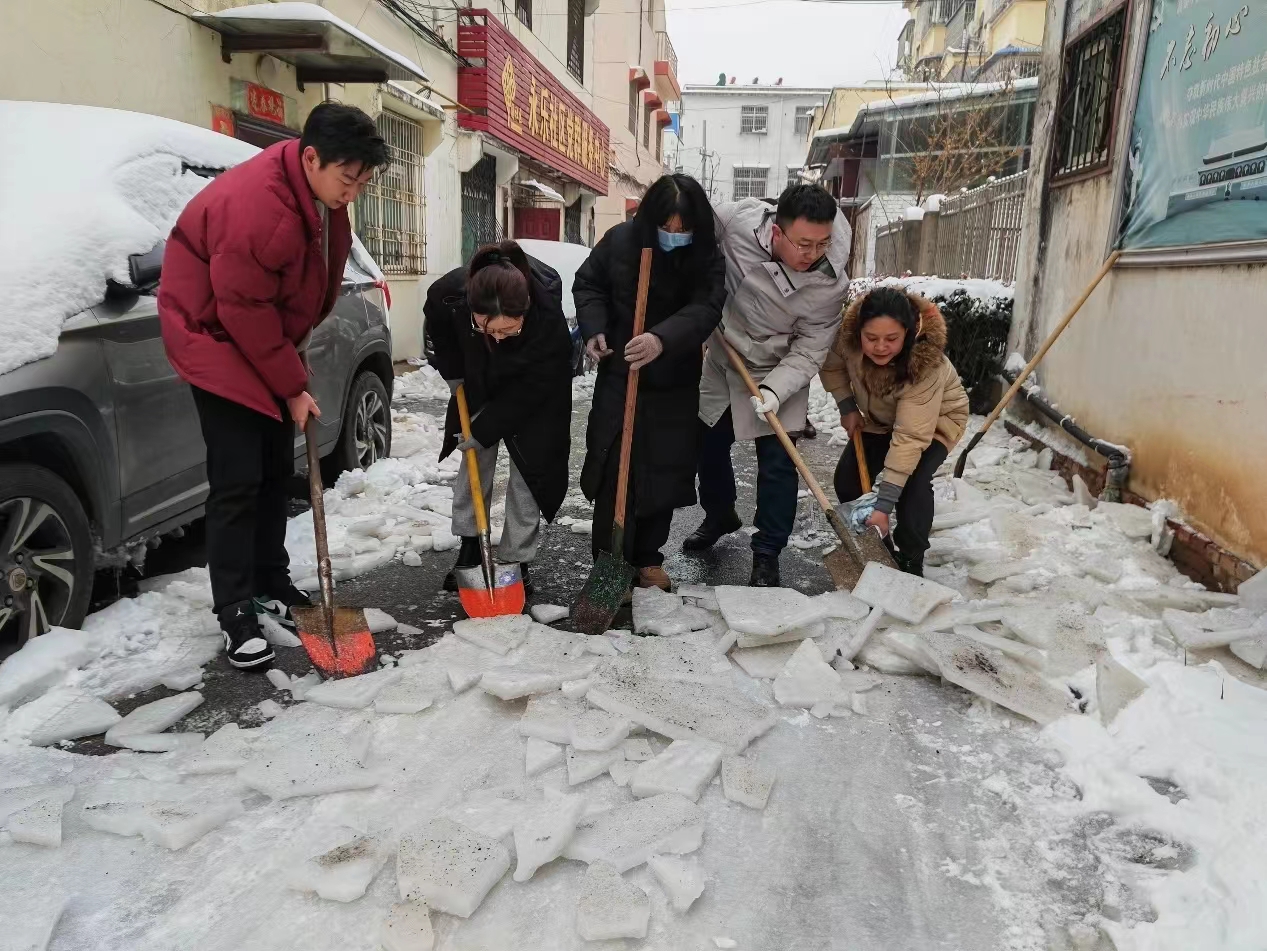 君建小区是永乐社区党群服务中心所在地。该小区居住大量老人和小孩,湿滑的冰面给群众出行造成不便。为保障群众安全出行、温暖过节,OK138太阳集团党总支副书记李秀林带领5名党员教师对君建小区主干道进行清扫。