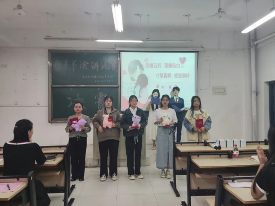 此次比赛,20级普专语教四班的高之萌和21级普专语教一班的刘晓宇荣获一等奖,20级普专小教八班的赵寻寻、21级普专语教八班杨锦荣、21级普专语教七班王柯、21级普专语教八班郭航航荣获二等奖,21级普专小教一班胡余秀、21级普专小教七班刘涵、21级普专小教四班霍紫伊、20级普专小教三班崔雅婷、19级五年制小教二班胡国月荣获三等奖。在活动的最后,副院长蒋吉优为本次活动做了精彩点评。她指出,此次活动意义重大,不仅增添了节日气氛,更向母亲表达了浓烈的爱。她自己也是一名母亲,深知母亲的辛勤和劳累,希望同学们可以牢记母亲的付出和伟大。当然,不只是生我们、养我们的母亲,更要牢记我们的祖国母亲,希望我们可以茁壮成长,用自己的力量去回报祖国、社会和家庭。