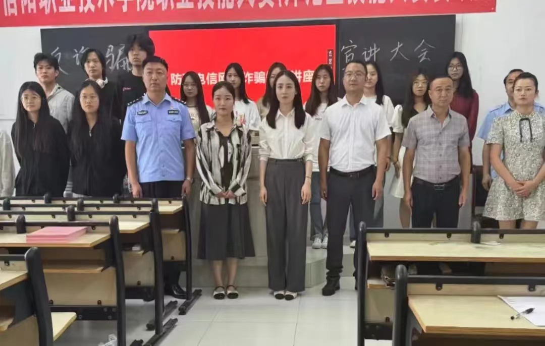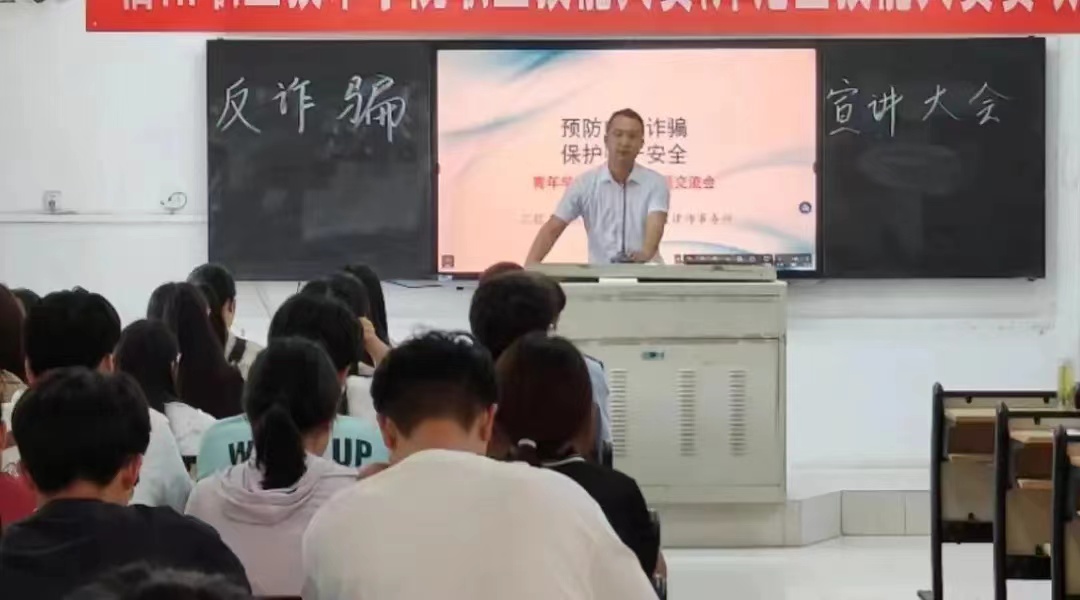 随着互联网的普及,电信网络诈骗成为社会日益突出的问题。为增强同学们的防骗意识,6月11日下午,在学校保卫处的组织下,OK138太阳集团邀请前进司法所、前进派出所和河南轩文律师事务所,在语传楼2018教室开展以“预防电信诈骗,保护财产安全”为主题的防诈骗教育大会。保卫处政保宣传科长卢远新和OK138太阳集团副院长付玉成,以及学院各班班长、保卫委员、学生代表共计100多人参加防诈骗主题教育大会。