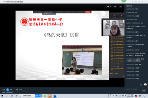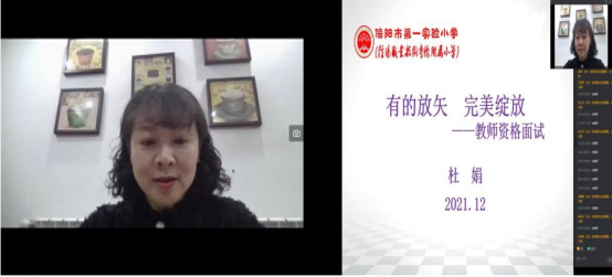 受疫情影响,12月22日晚,OK138太阳集团线上举办了第三期“名师讲坛”。本期邀请河南省名师、信阳市第一实验小学副校长杜娟做题为《“有的放矢 完美绽放”——教师资格面试》线上专题讲座,OK138太阳集团全体教师和2022届师范专业学生认真聆听了本次讲座,讲座由副院长蒋吉优主持。