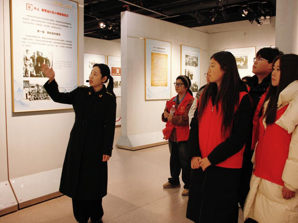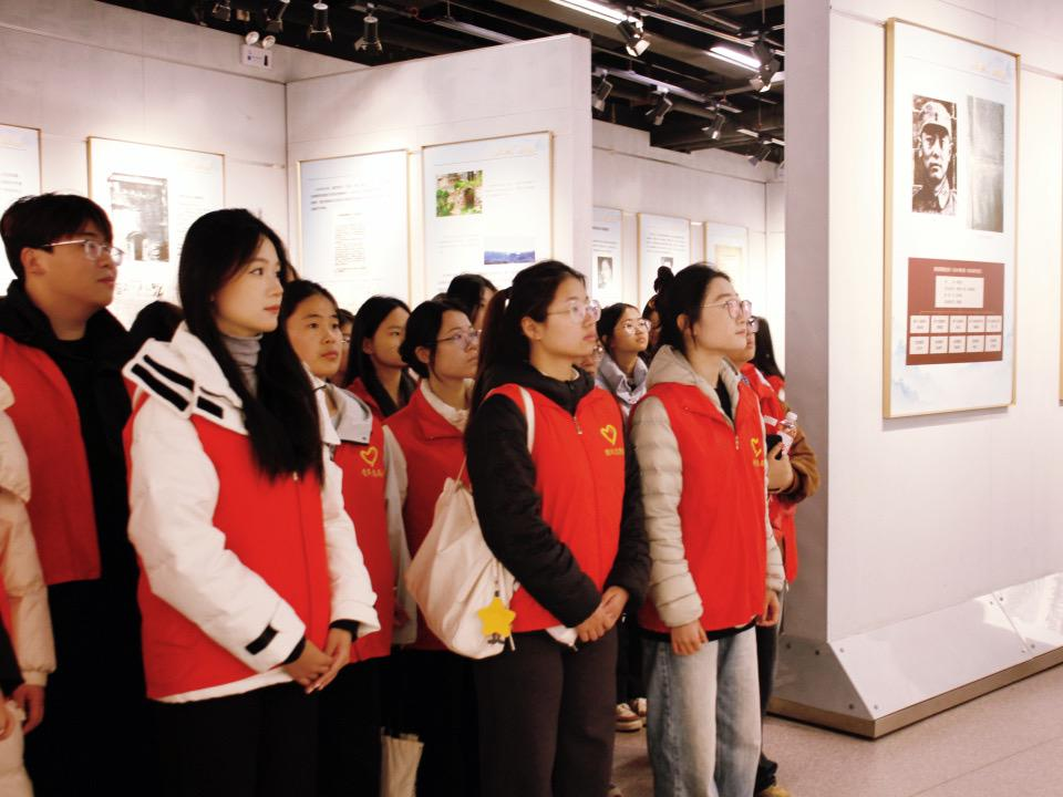 展馆的每一张照片、每一件文物、每一段文字都刻着革命岁月的峥嵘,从抗日烽火中的浴血奋战,到解放全中国的决胜千里,党的百年奋斗史深深烙印在每一位同学的心中。参观过程中,同学们不时驻足凝视、低声交流,共同追思革命先辈的牺牲与奉献,携手践行中国的使命与担当。